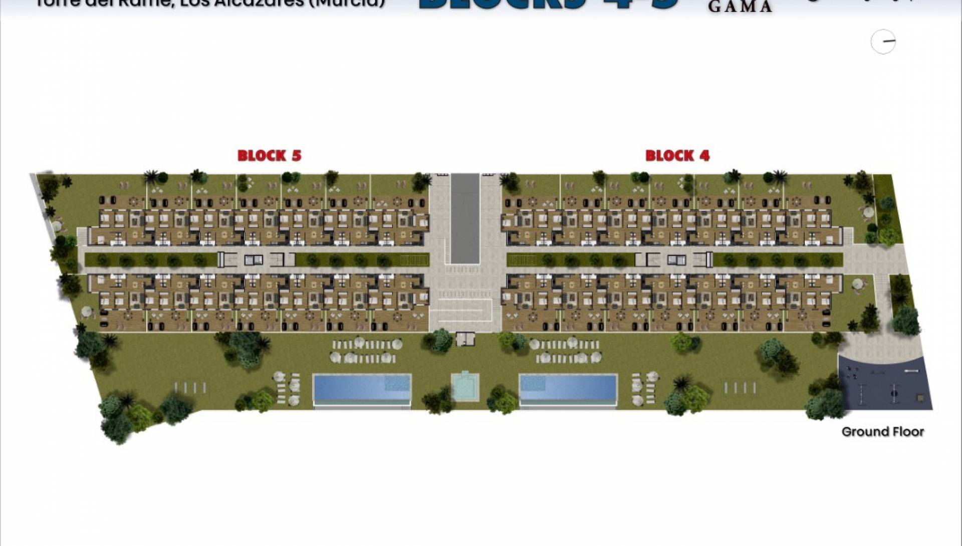 Our project will be divided into 8 blocks and has 244 apartments with 2 and 3 bedrooms, with modern design and finishes, located inside the La Serena golf course, in Los Alcazares. The ground floors have a beautiful garden, some with a private pool, and the second floors have a private solarium with access through the interior of the house.